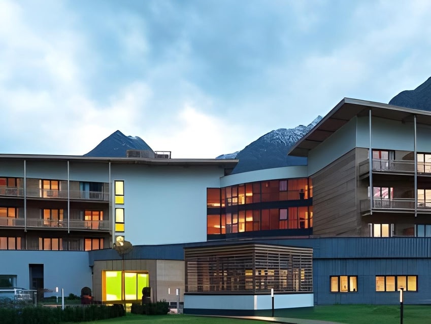 This luxurious 4-star superior hotel offers stunning views of the Ötztal Alps, spacious and elegant rooms, and the only thermal spring in Western Austria.