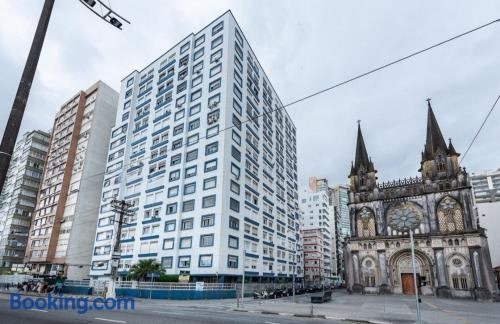 Objekt Apartamento em frente a Praia, Embaré Santos nalazi se u gradu 'Santos' na 2 km od znamenitosti Trgovački centar i 5,9 km od znamenitosti Autobusni kolodvor Santos te nudi smještaj s opremom kao što su besplatan WiFi i TV ravnog ekrana.