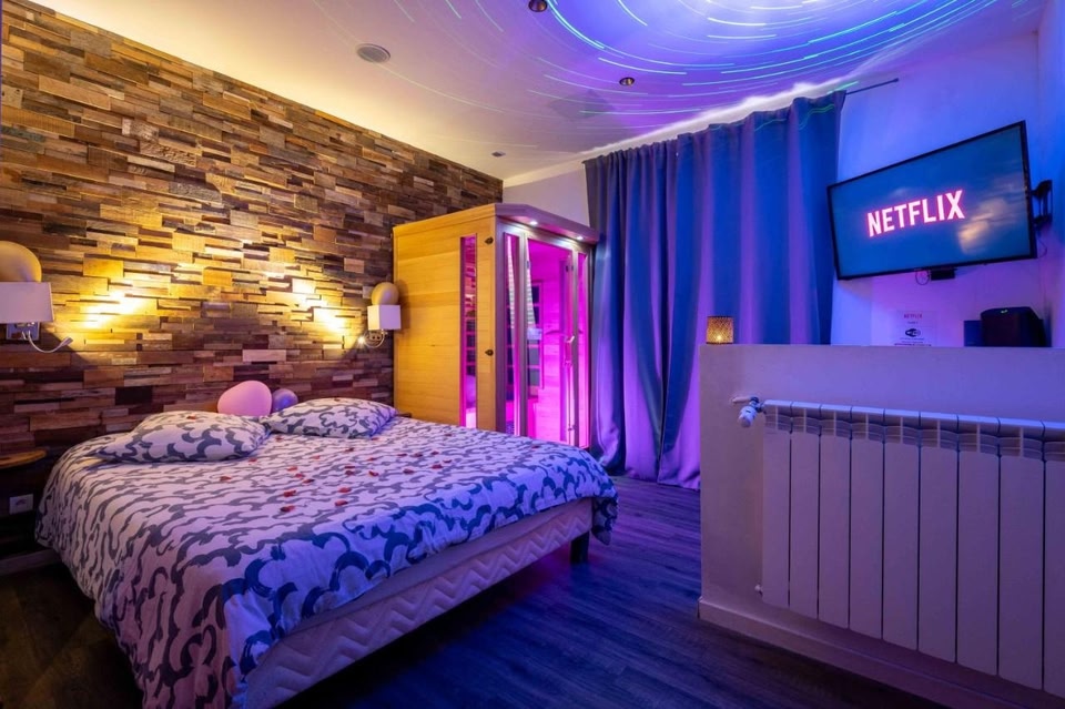 Objekt Suite pour les Amoureux_Val d'Europe Disney smješten je u gradu 'Coupvray', na 6,3 km od znamenitosti Zabavni park Disneyland Paris i 9,3 km od znamenitosti Val d'Europe RER Station, te sadrži besplatan WiFi, vrt i pristup sauni i...