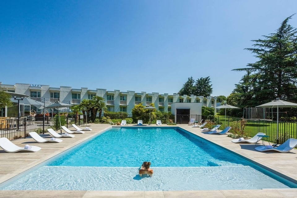 Located 10 minutes from the airport in the foothills of the Pyrenées, this hotel is ideal for families and business travellers alike, offering spacious rooms, some with views of the garden or pool.