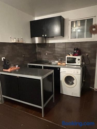 Set in Wissous in the Ile de France region, Charmant studio, 10 minutes d’Orly / 20 minutes de Paris has a balcony. Guests staying at this apartment have access to a fully equipped kitchen and a terrace.