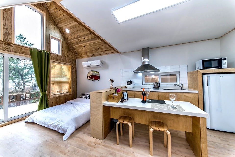 Aewol, a neighborhood in Jeju City, is home to Browncabin Pension. Shoppers can check out Dongmun Market, while everyone can enjoy the natural beauty of Hyeopjae Beach and Tapdong Beach Plaza. Jeju Shinhwa World and Theme Park Psyche World are also worth visiting. While you're here, you can enjoy all the comforts of home and more, including a refrigerator and a stovetop, as well as free WiFi and a flat-screen TV. Other amenities include towels, slippers, kitchenware and utensils, and free toiletries.
