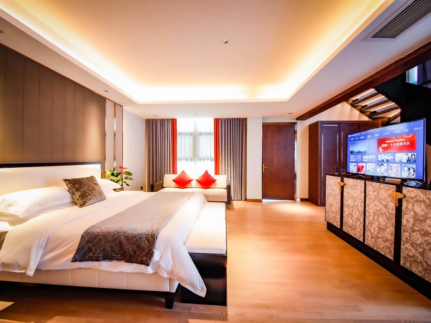 The hotel is located in the Xianshan Gongshui Tourist Area of Xuan'en County, Enshi Prefecture, Hubei Province. It faces the Tujia Moda Tower, Miao Bell Tower, and Dong Wind and Rain Bridge. Within a 30 minute drive from the nearby scenic area, there are tourist attractions (Wujiatai Scenic Area and Shiziguan Scenic Area). The hotel is surrounded by supermarkets, shopping malls, and outdoor tea bars; The hotel has convenient transportation and is 40 kilometers away from Enshi Airport and Enshi Railway Station, and only 2 kilometers away from Xuan'en Bus Station. It is the best choice for business negotiations, tourism and leisure at home.The hotel's Art Deco design and decoration style is mainly integrated with local cultural elements, creating a spark of fusion between Chinese and Western cultures; Having a variety of luxurious and exquisite guest rooms with a parking lot of 280 parking spaces, the hotel has a beautiful environment, elegant style, comfortable and luxurious rooms, unique dining flavors, and a lobby bar. Staying in the hotel is an immersive travel experience. Guests can also enjoy designated Dim sum and drinks during social time.The hotel also has a heated swimming pool, gym, and laundry room. You can also experience the local very simple folk customs and strong festive atmosphere, which can be said to be: "There are festivals throughout the four seasons, bringing joy and popularity.".