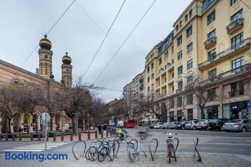 Objekt Hyper Central - NEW - Very Small Studio smješten je u samom centru odredišta ‘Budimpešta’ na samo 2 min hoda od znamenitosti Sinagoga u ulici Dohany i manje od 1 km od znamenitosti Blaha Lujza Square te ima besplatan WiFi i pogled na grad.