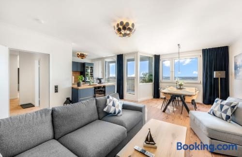 Objekt Exklusives Apartment Sunrise mit Whirlpool, Pool und Sauna s pogledom na grad nudi smještaj s balkonom i aparatom za kavu na oko 6 min hoda od znamenitosti Plaža Weser-Strandbad.