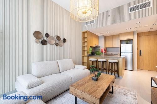 Objekt Luxury 1-Bedroom Apartment with Hall in Mamsha smješten je na 15 km od znamenitosti Trgovački centar Sahara Centre i 15 km od znamenitosti Akvarij Sharjah Aquarium u Sharjahu te nudi smještaj s kuhinjom.