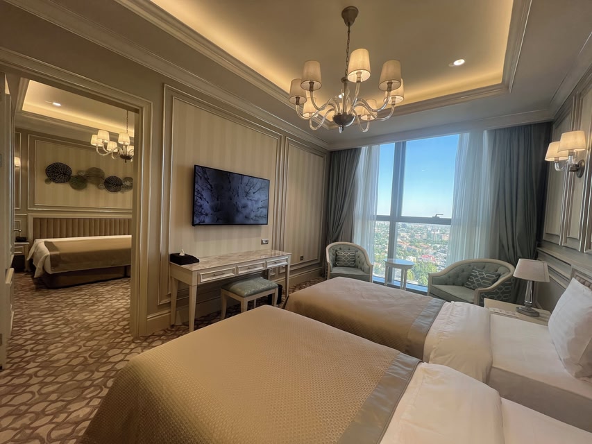 Located in Shayhontohur District, a neighborhood in Tashkent, T-CITY PRESIDENTIAL HOTEL is in the entertainment district and near theme parks. Seattle Peace Park and Navruz Park reflect the area's natural beauty and area attractions include Magic City Park and Ice City. Anhor Lokomotiv Bogi and UzExpoCenter are also worth visiting. Take an opportunity to explore the area for outdoor excitement like horse riding. Hotel in Tashkent with free breakfast and spa servicesThis hotel features spa services, concierge services, and dry cleaning. Free buffet breakfast, free WiFi in public areas, and free self parking are also provided. Other amenities include laundry facilities, a 24-hour front desk, and a porter/bellhop. T-CITY PRESIDENTIAL HOTEL offers 61 air-conditioned accommodations with laptop-compatible safes and bathrobes. These individually furnished accommodations have separate sitting areas and include desks. Beds feature premium bedding. 45-cm Smart televisions come with digital channels. Bathrooms include bathtubs or showers with rainfall showerheads and hydromassage showerheads, slippers, bidets, and complimentary toiletries. Guests can surf the web using the complimentary wireless Internet access (speed: 100+ Mbps (good for 1–2 people or up to 6 devices)). In-room massages and irons/ironing boards can be requested. A nightly turndown service is provided and housekeeping is offered daily.